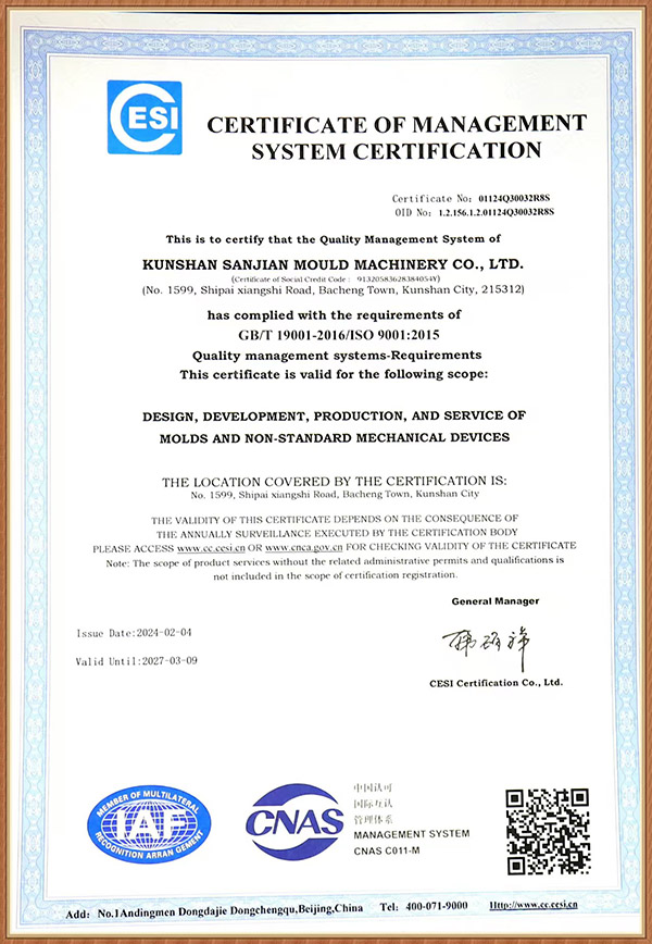 昆山市三建模具機械有限公司 創建于1996年,是一家研發生產電冰箱模具(電冰箱門、箱真空成型吸塑模、沖孔切邊模、 發泡內外夾具、沖壓模具)產品并提供成套專業化控制解決方案的企業。 公司位于昆山市經濟技術開發區石牌工業配套區,交通便利。公司占地面積3.3萬平方米,建筑面積1.2萬余平方米,固定資產達5000萬元。 公司已通過ISO 9001:2008認證。 公司現有員工120人,各類專業技術人員35人。擁有蘇州市級企業技術中心和省級工程技術研究中心,擁有優良的專業化研發團隊和自主知識產權。 公 司擁有完善的銷售網絡,產品80%以上出口,銷往全球10多個國家和地區。主要客戶品牌如三星、松下、日立、東芝、夏普、三菱、三洋、星崎、LG、伊萊克斯、惠而浦等。 公司旗下擁有蘇州...